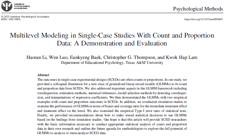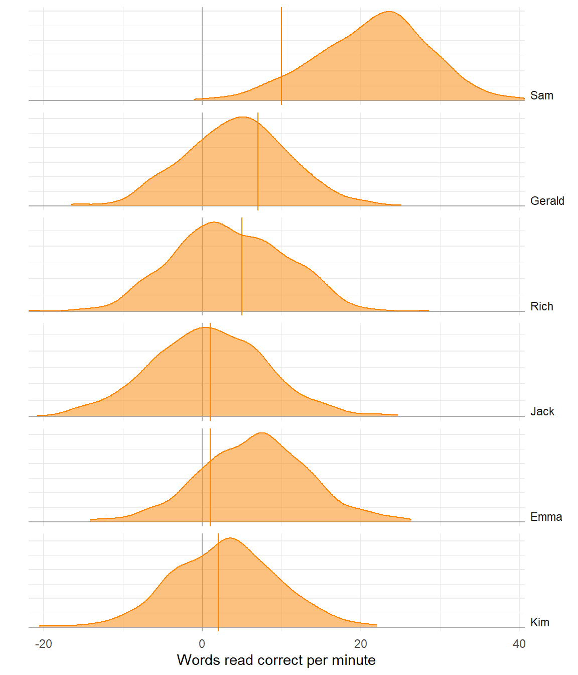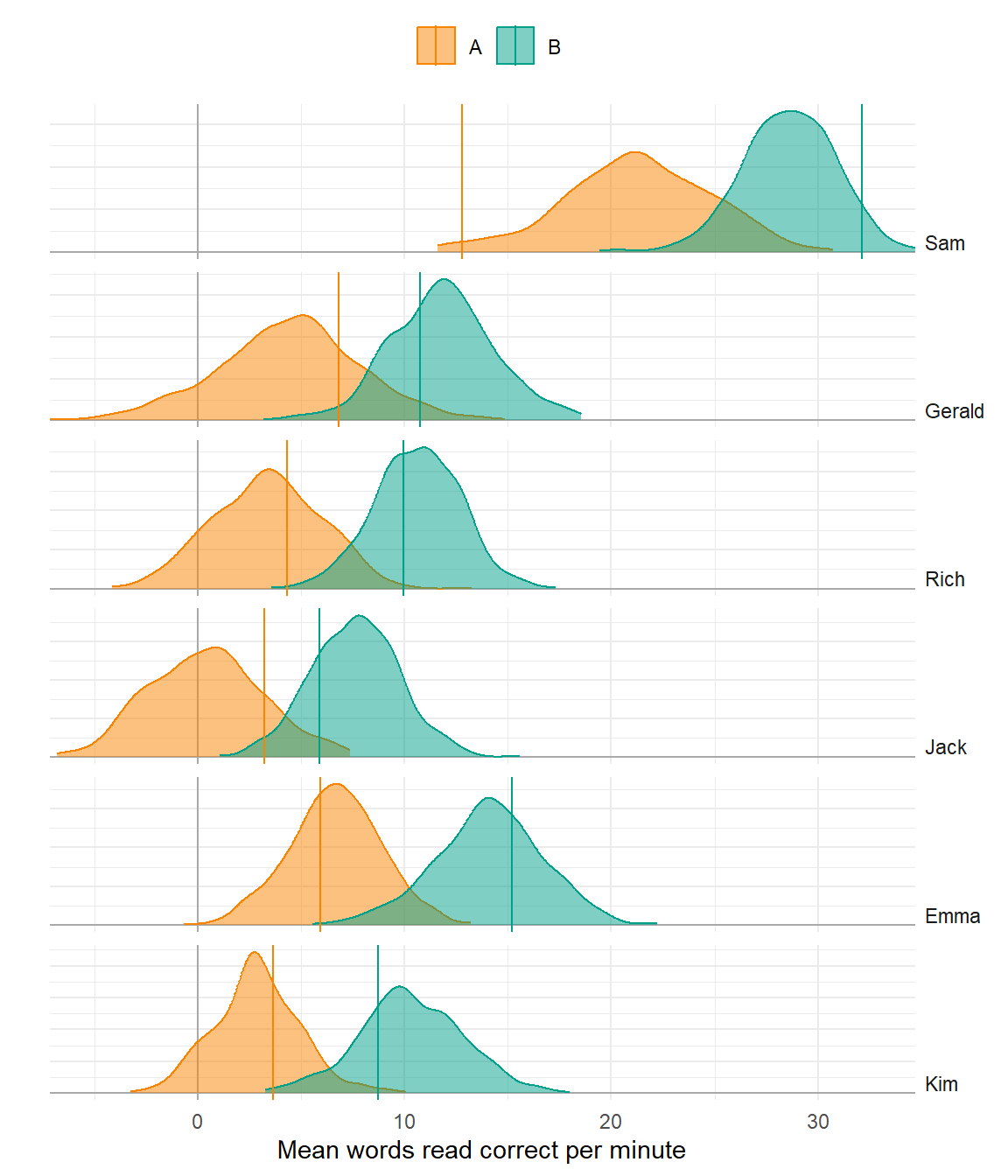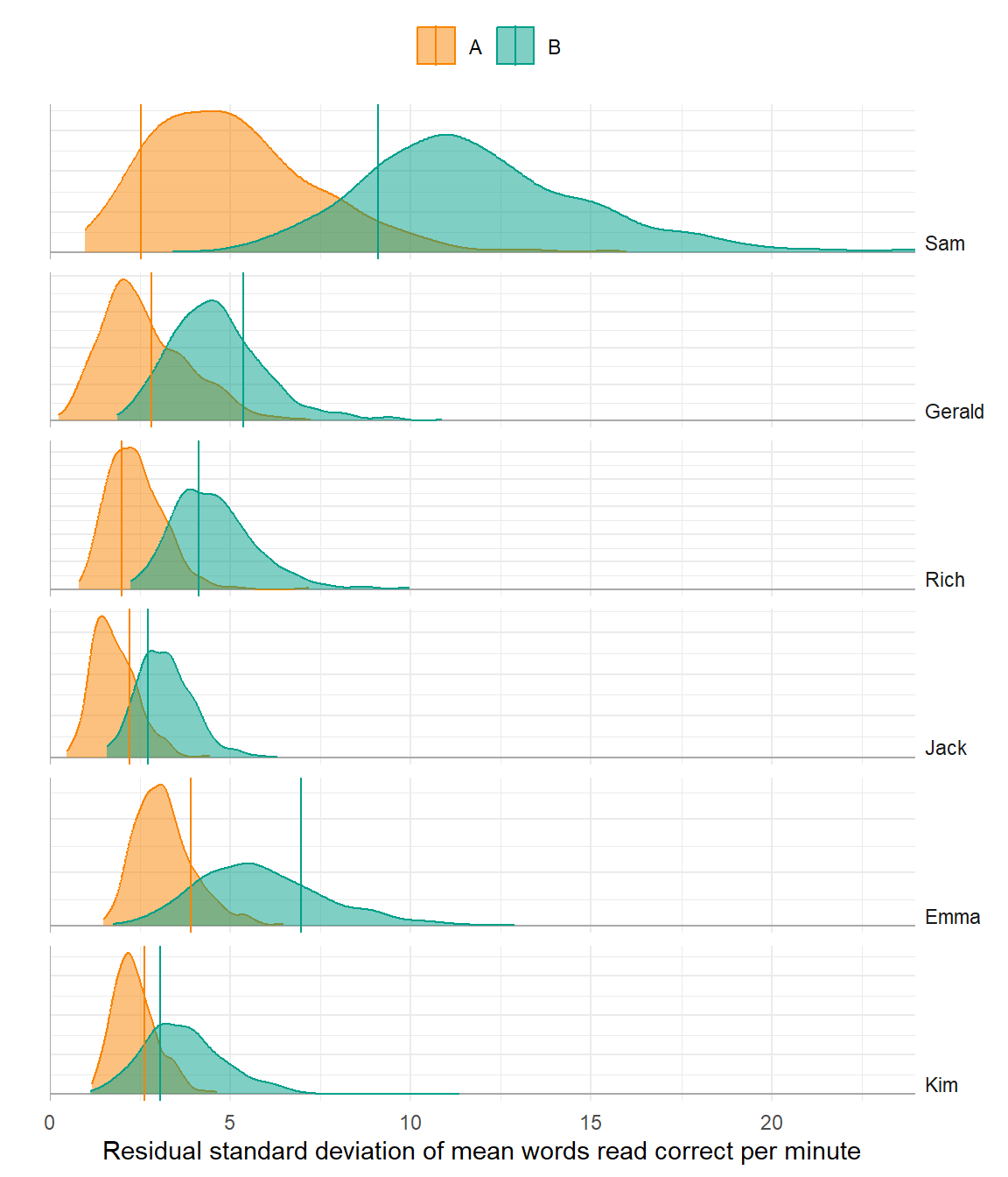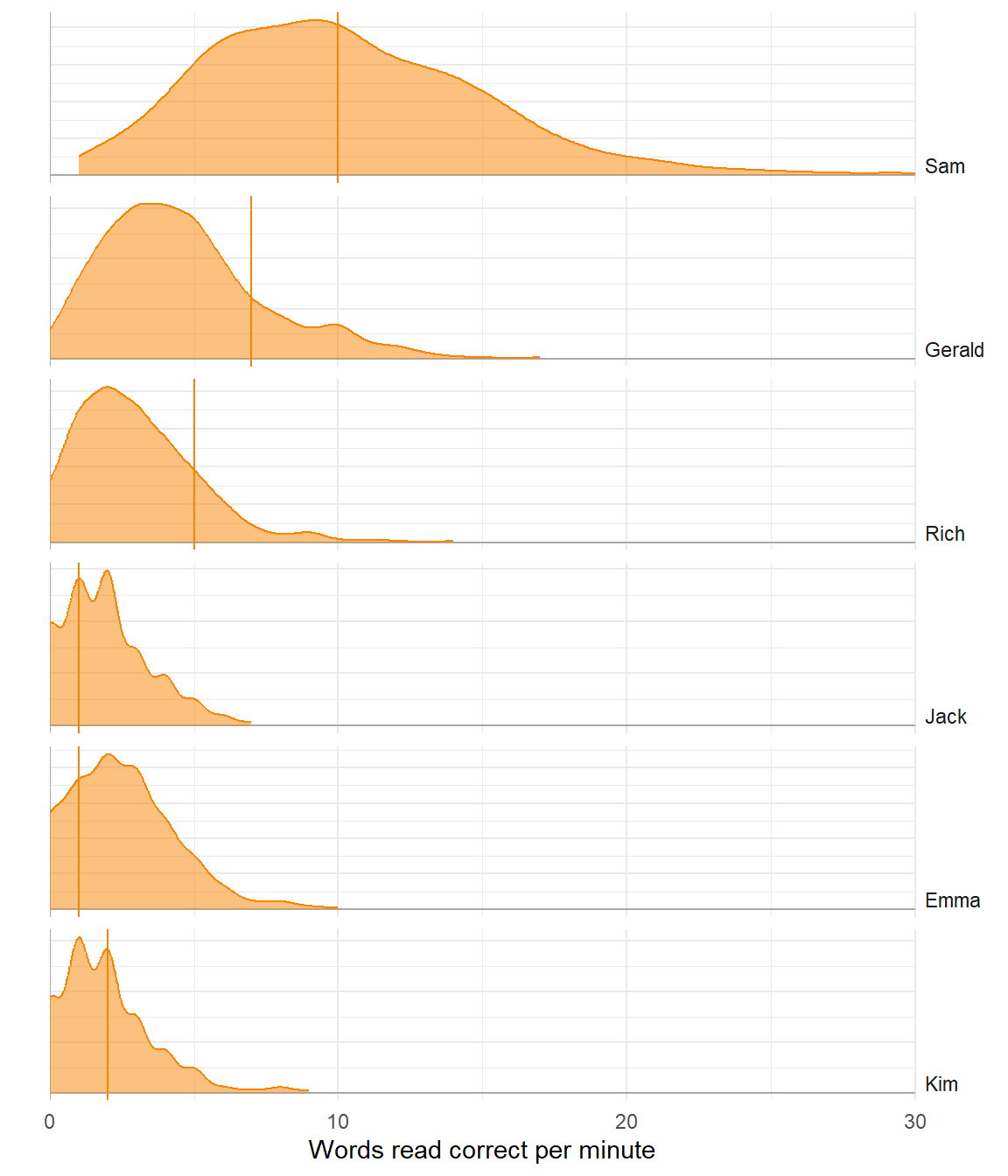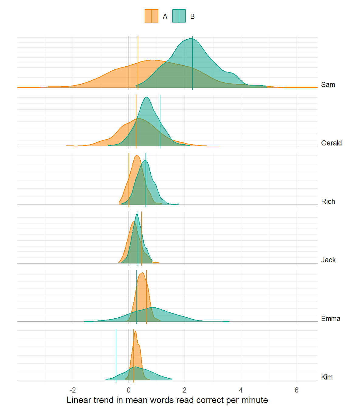 Grekov, Pustejovsky, and Klingbeil (2024) explore use predictive checks for meta-analytic models of oral reading fluency outcomes in SCDs.