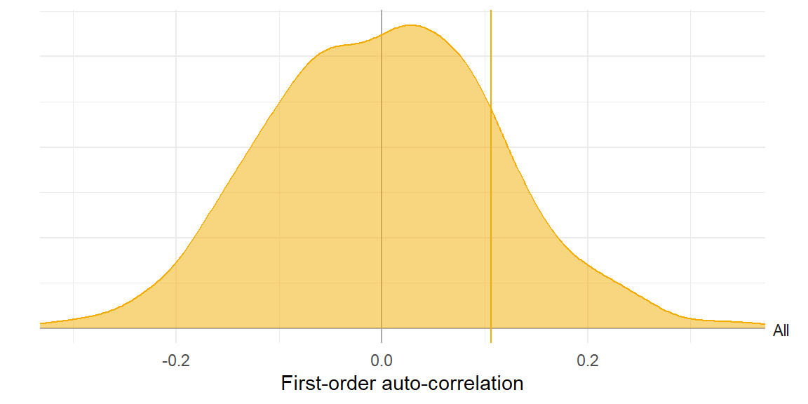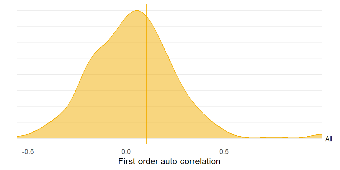 Auto-correlation: First-order auto-correlation estimate (Busk and Marascuilo 1988; Matyas and Greenwood 1996)